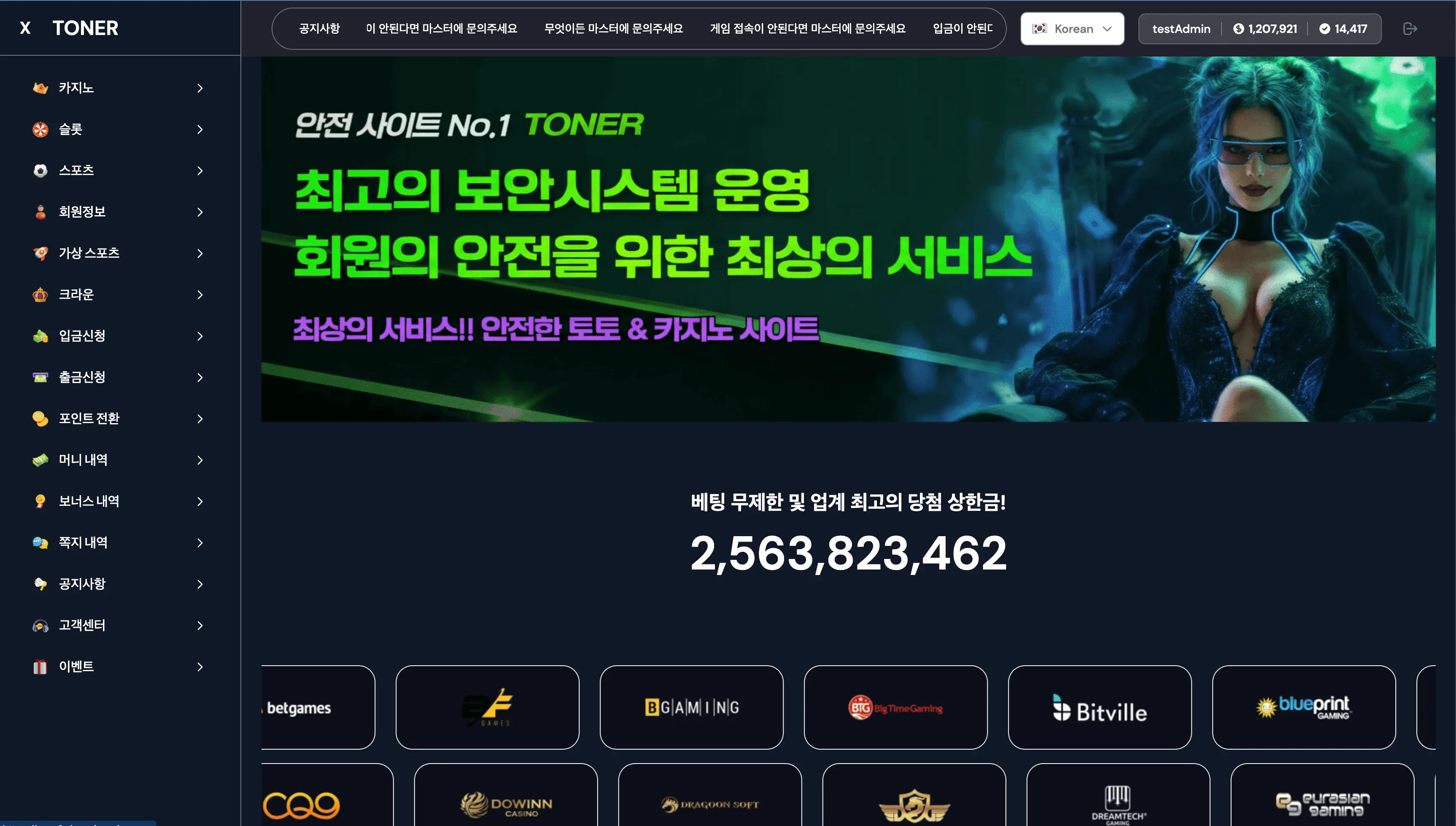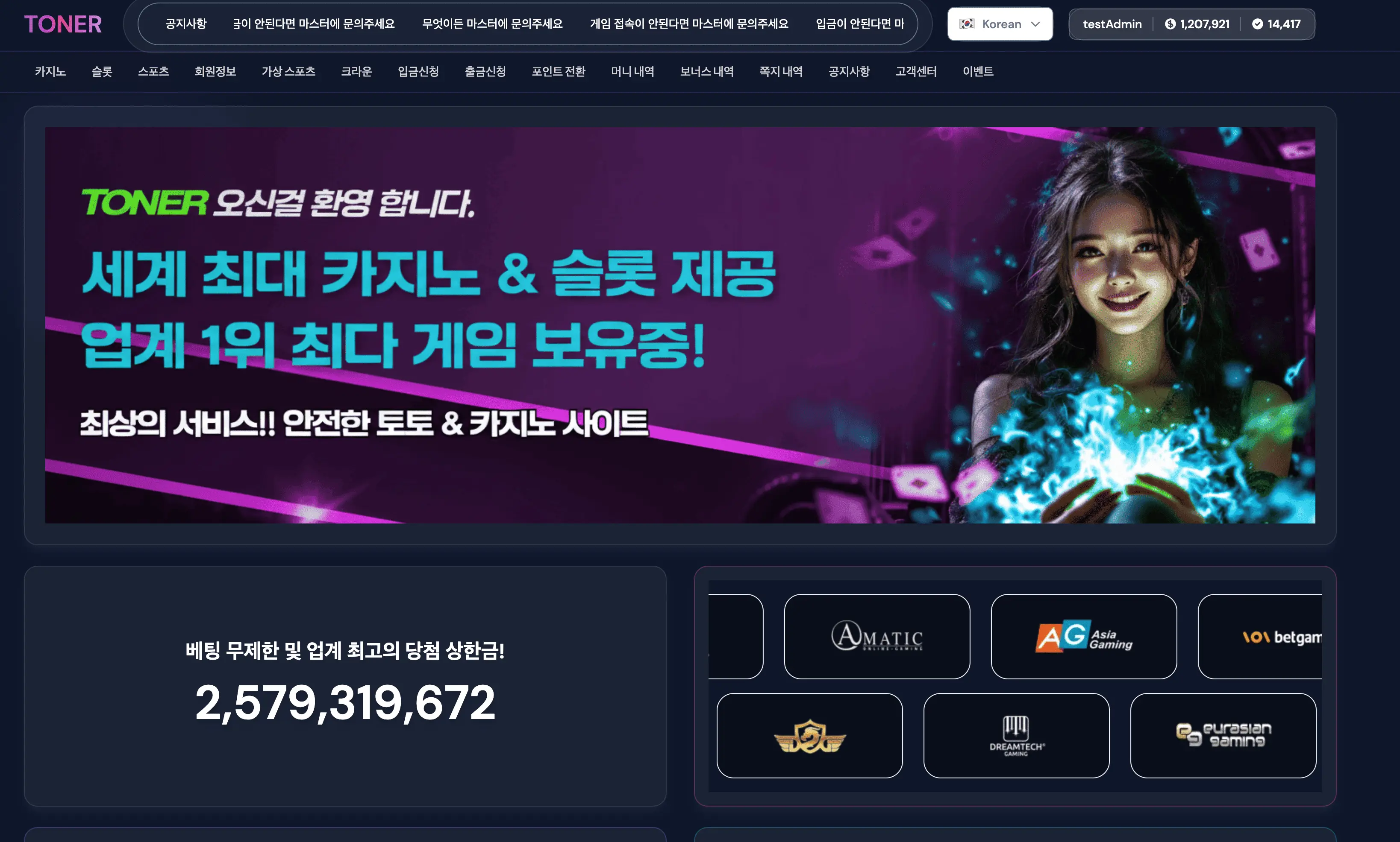 슬롯, 카지노, 스포츠 등 다양한 사이트 테마 보유